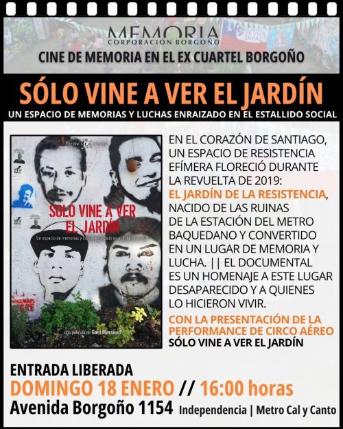 Le 18 Janvier 2026 à l’espace Borgoño avec la performance de Pamela et un concert par un membre du jardin dans un lieu de mémoire qui est un ancien centre de torture qui a été récupéré.